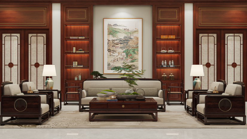 明堂家居原木整装定制设计团队,由国家级资深设计、专业工程施工工程部、模拟空间呈现效果图中心、规范价格体系核价部组成 平均行业经验10年以上,专业、高效、真诚、透明,快速助力您的中式理想生活落地
